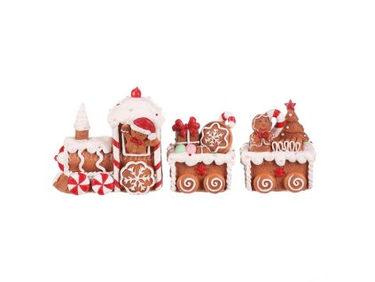 Perníčkový vláčik z polyresinu, dokonale prepracovaný. Cena za komplet - 3 časti ako na foto. Jednotlivé časti nie sú spojené, viete si ich rôzne rozložiť. Farba: hnedá, biela...