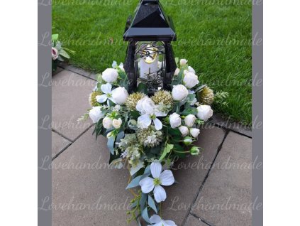 Kvetinový aranžmán s kahancom s LED sviečkou v jemnej bielej farbe. Je možné vyrobiť aj v inej farebnej kombinácii, stačí napísať poznámku alebo nás kontaktovať emailom....