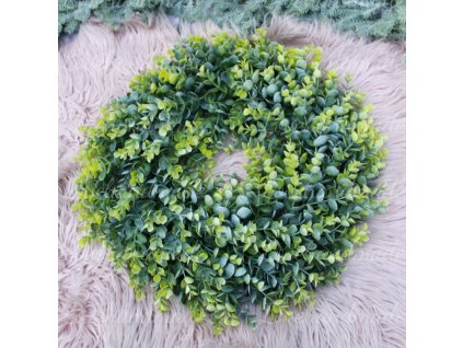 Plastový veniec eukalyptus v zelenej farbe s priemerom až 50cm. Perfektne sa hodí na celoročné/jarné/letné/jesenné aranžovanie. Top kvalita. Cena za 1ks.