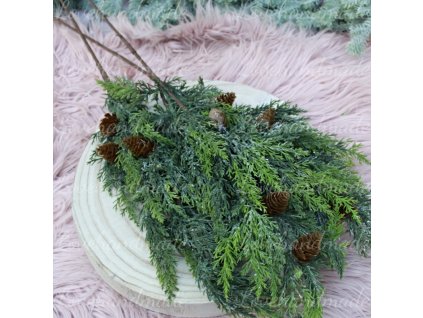 Konár tuja s glitrom 68cm. Dokonale prepracovaná, ako živá. Gumený 3d materiál, realistické prevedenie. Cena za 1ks.