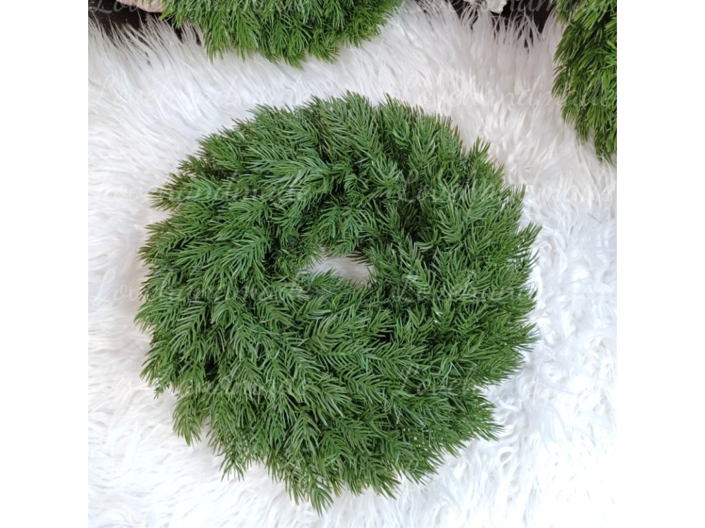 Kvalitný zelený veniec z umelej 3D čečiny v kvalitnom hustom prevedení. Priemer zeleného venca je cca 30cm, záleží od finálnej úpravy.