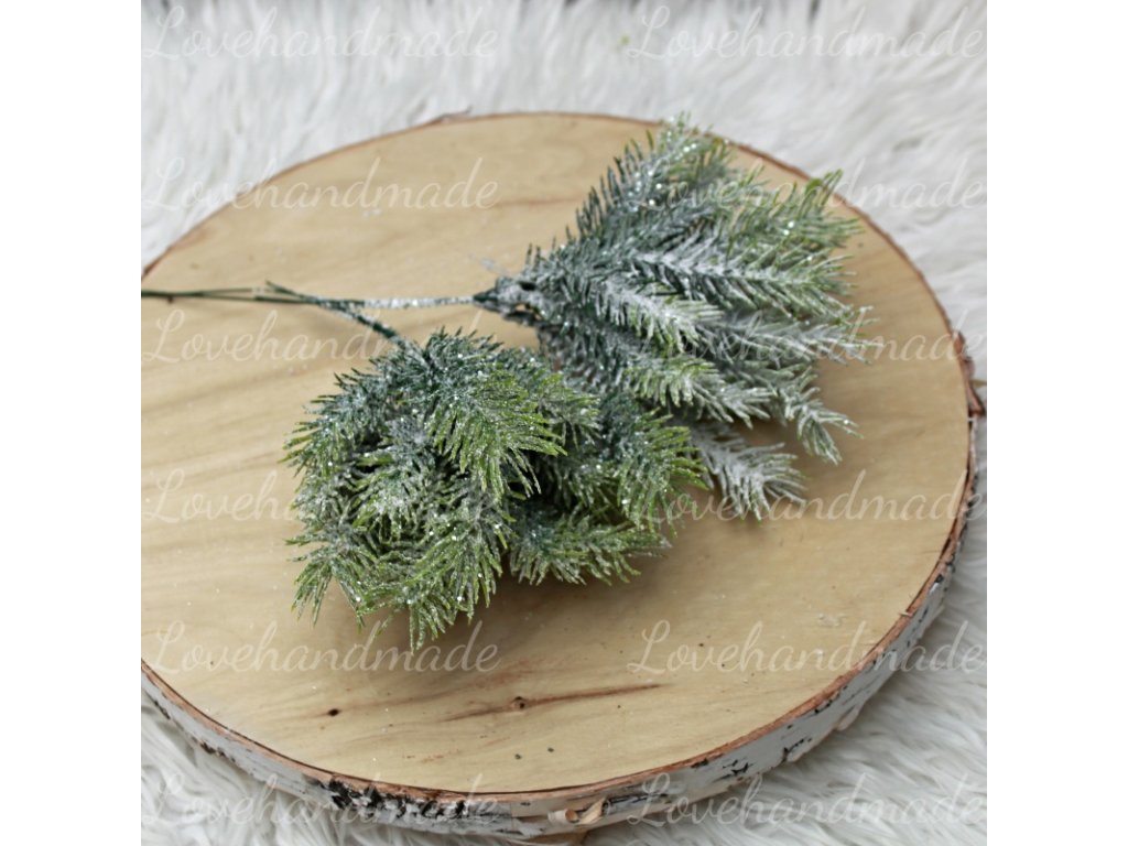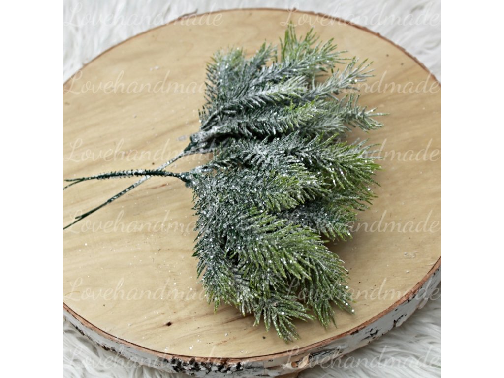 Dokonalá hustá vetvička zeleného 3d ihličia s glitrom a snehom. Vhodná aj na zapichovanie. Vhodná na aranžovanie, do ikebán a pod. Cena za 1ks.