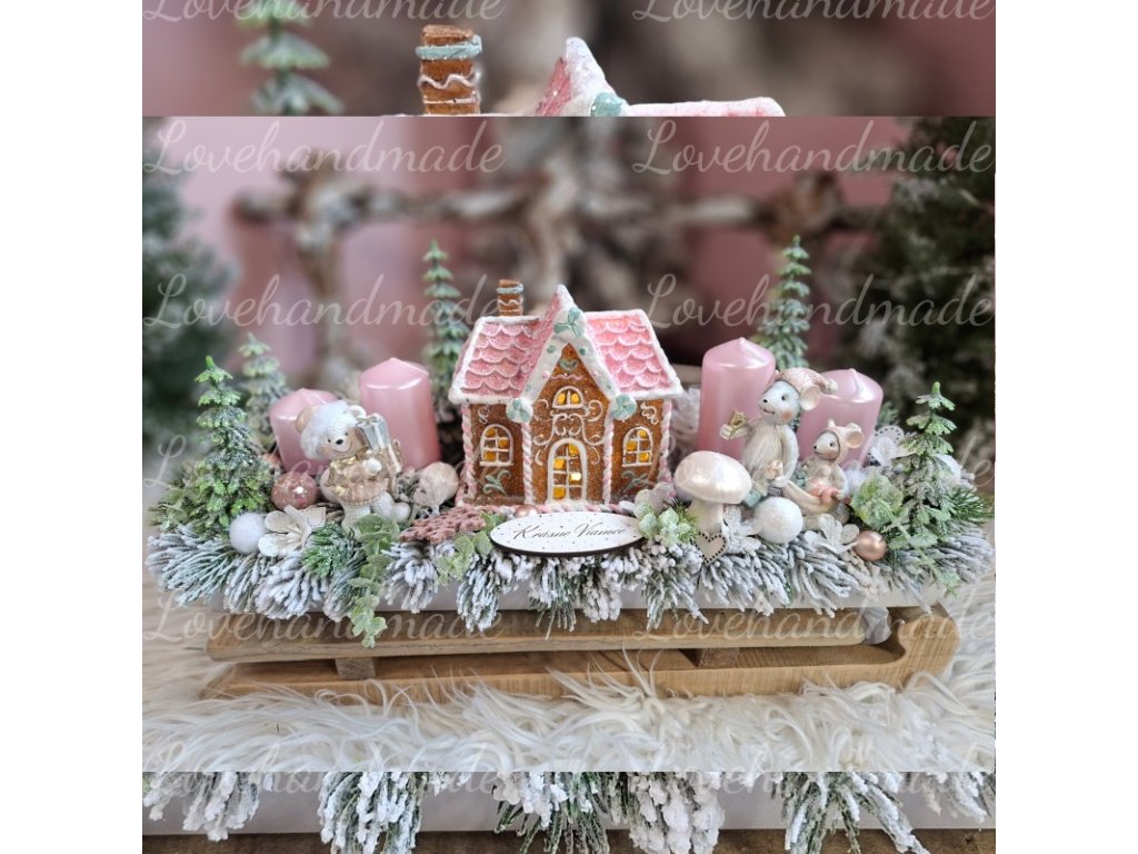 💜Nádherný adventný svietnik s perníkovou chalúpkou, ktorá svieti.💜