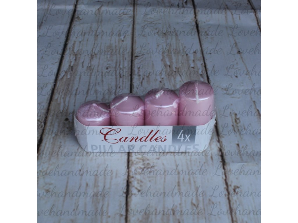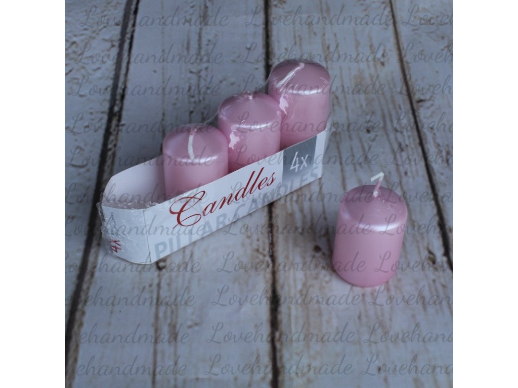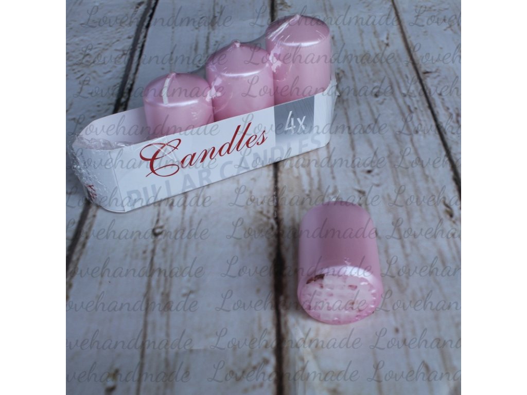 Adventné sviečky, perleťové v svetlo ružovej farbe a postupnej výške. Rozmery: výška 6-9cm, priemer 4cm