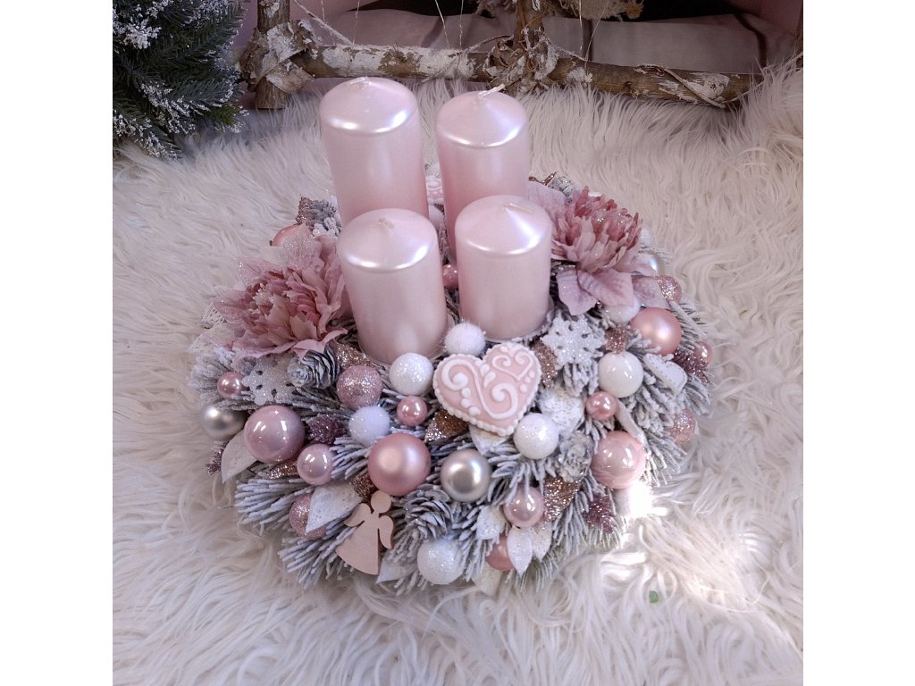 💜Nádherný originálny adventný veniec v ružovo-bielej kombinácii. Veľmi husto zdobený kvalitným 3d zasneženým ihličím.💜