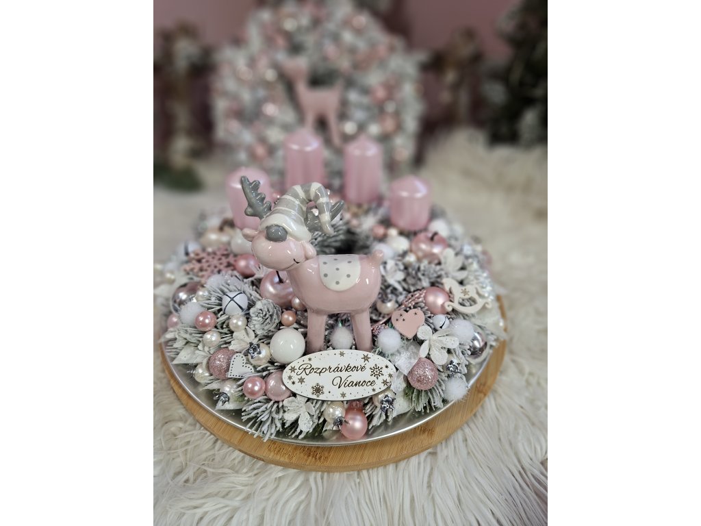Adventný veniec so sobíkom ružovo-biely 31cm