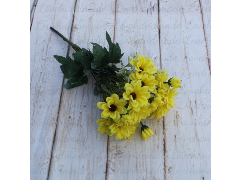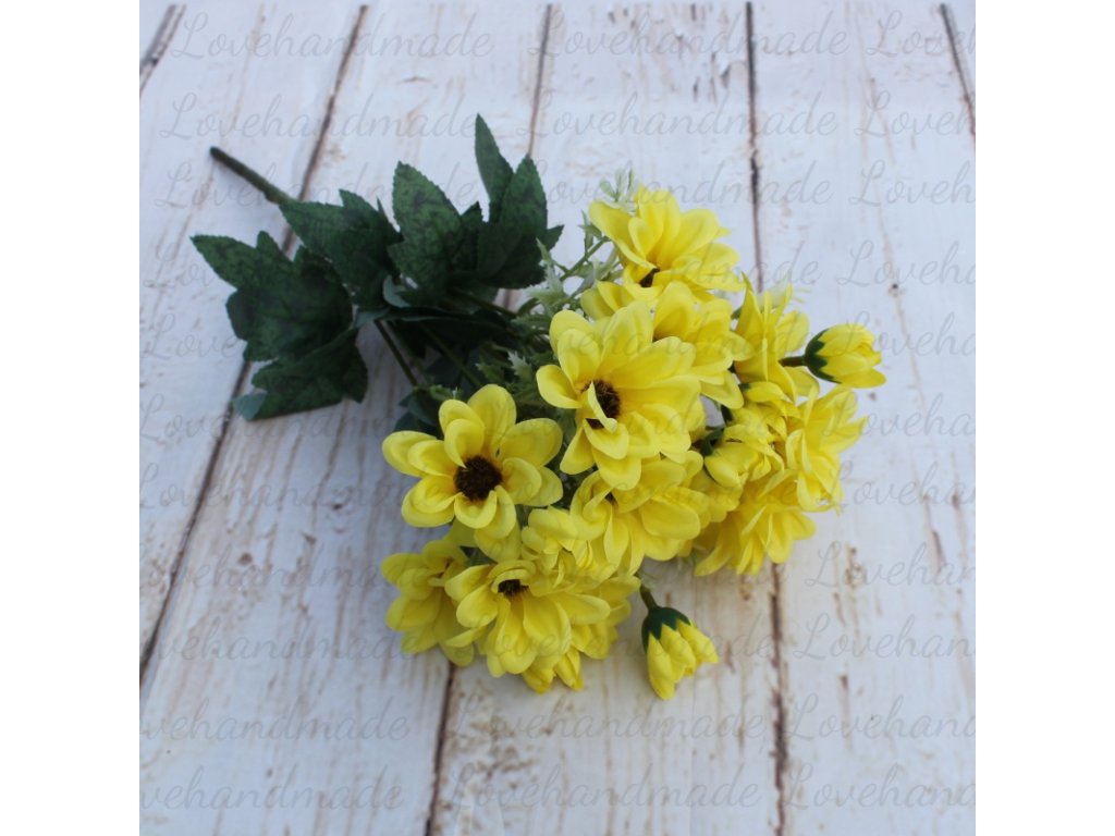 Umelá textilná kytička chryzantém v žltej farbe, vhodná ako dekorácia do vázy alebo na ďalšie aranžovanie. Krásne sýte farby. Celková výška kytičky cca 40cm.