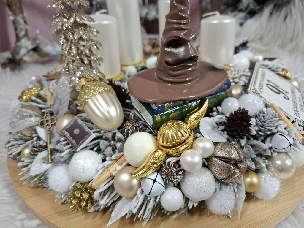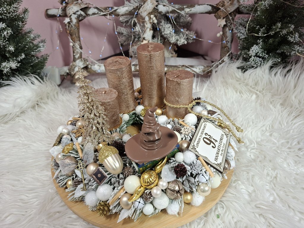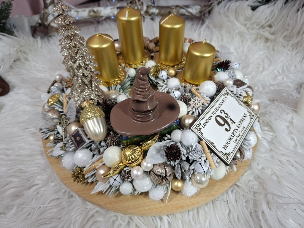 Nádherný adventný svietnik s HP tématikou. Jediný originálny kus.