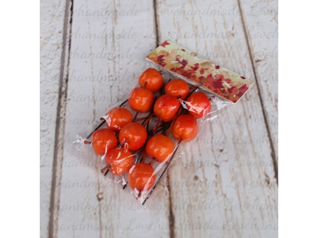 Oranžové jabĺčka zápichové v balení po 12ks. Vhodné na jesenné, vianočné a zimné aranžovanie.