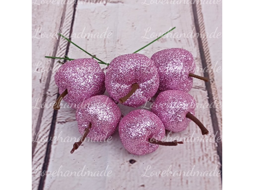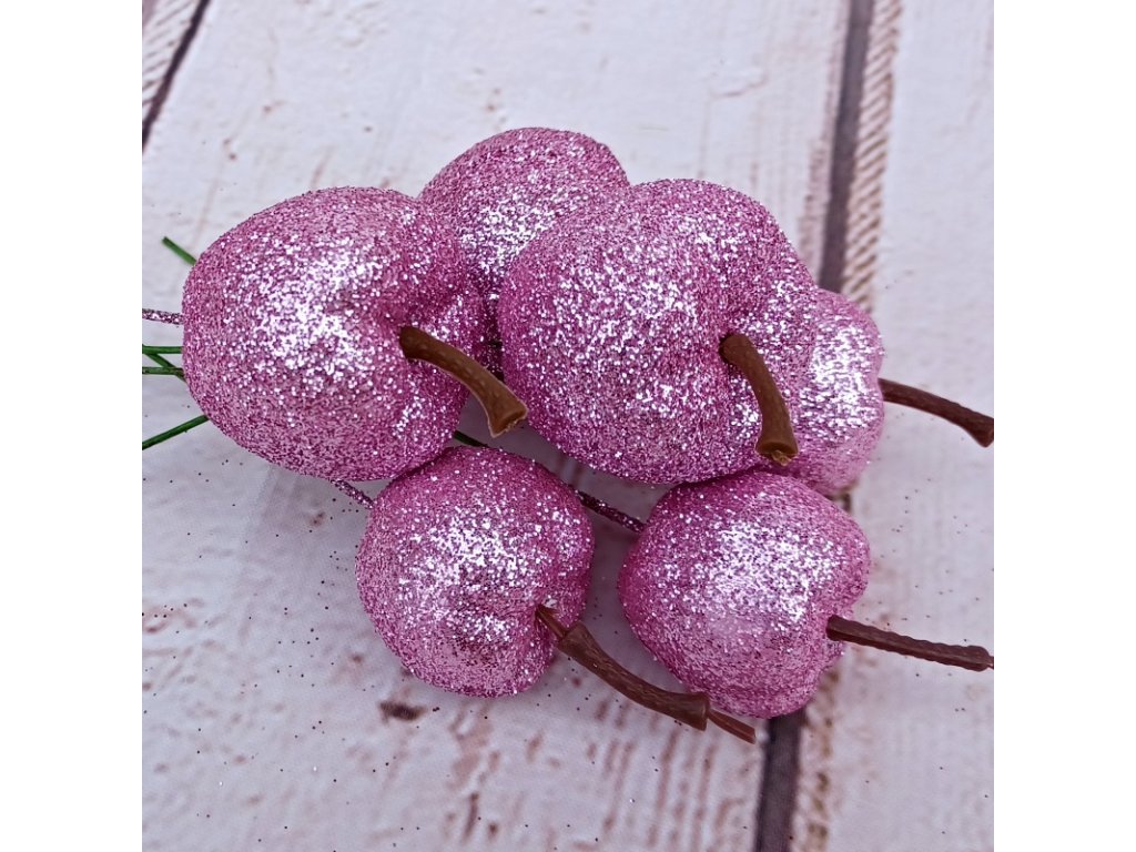 Kvalitné jabĺčka ružové glitrové. Zväzok 6ks, vhodné na vianočné aranžovanie.