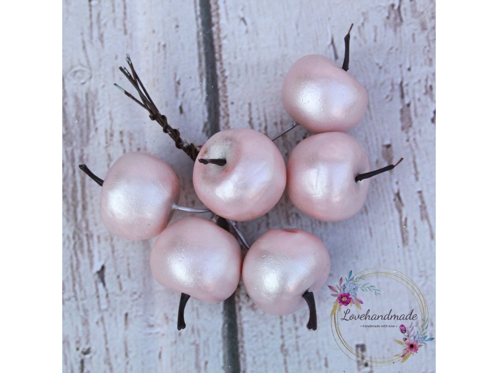 Kvalitné jabĺčka ružové perleťové. Zväzok 6ks, vhodné na vianočné, či jesenné aranžovanie.