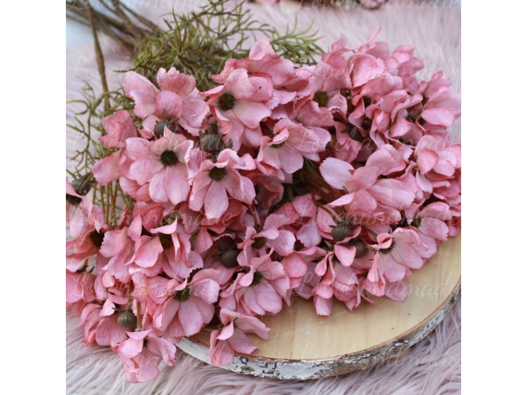Vintage pastelový konár cosmos v staroružovej farbe, s výškou cca 67cm. Vhodný do vázy na náhrobné miesto alebo na dalšie aranžovanie.