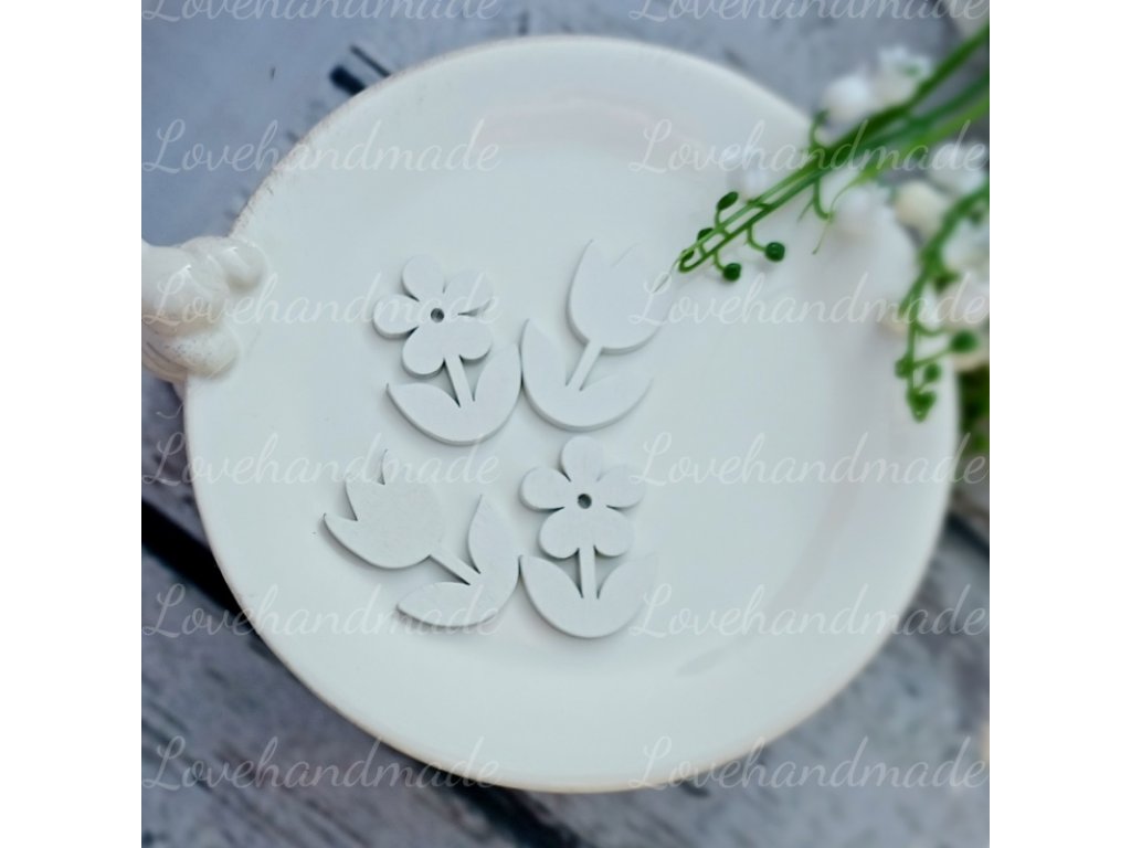 Drevené kvetinky biele mix druhov v balení po 4ks. Vhodné na jarné a veľkonočné aranžovanie. Bielej farby. Rozmer cca 3,5cm.