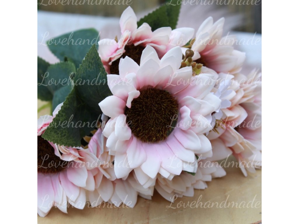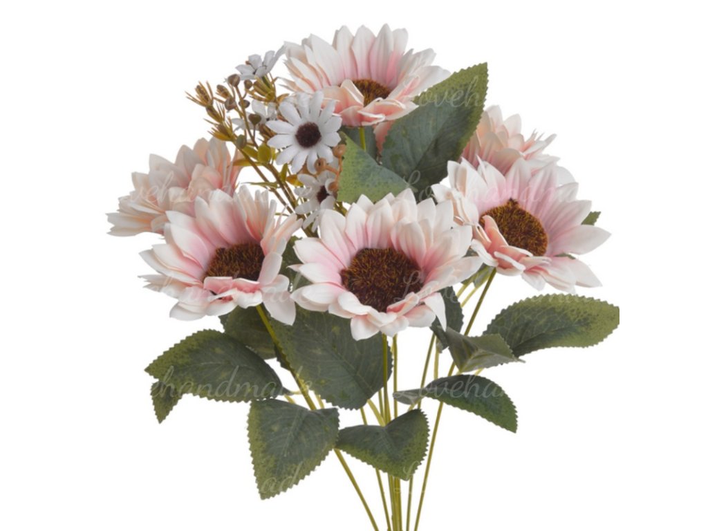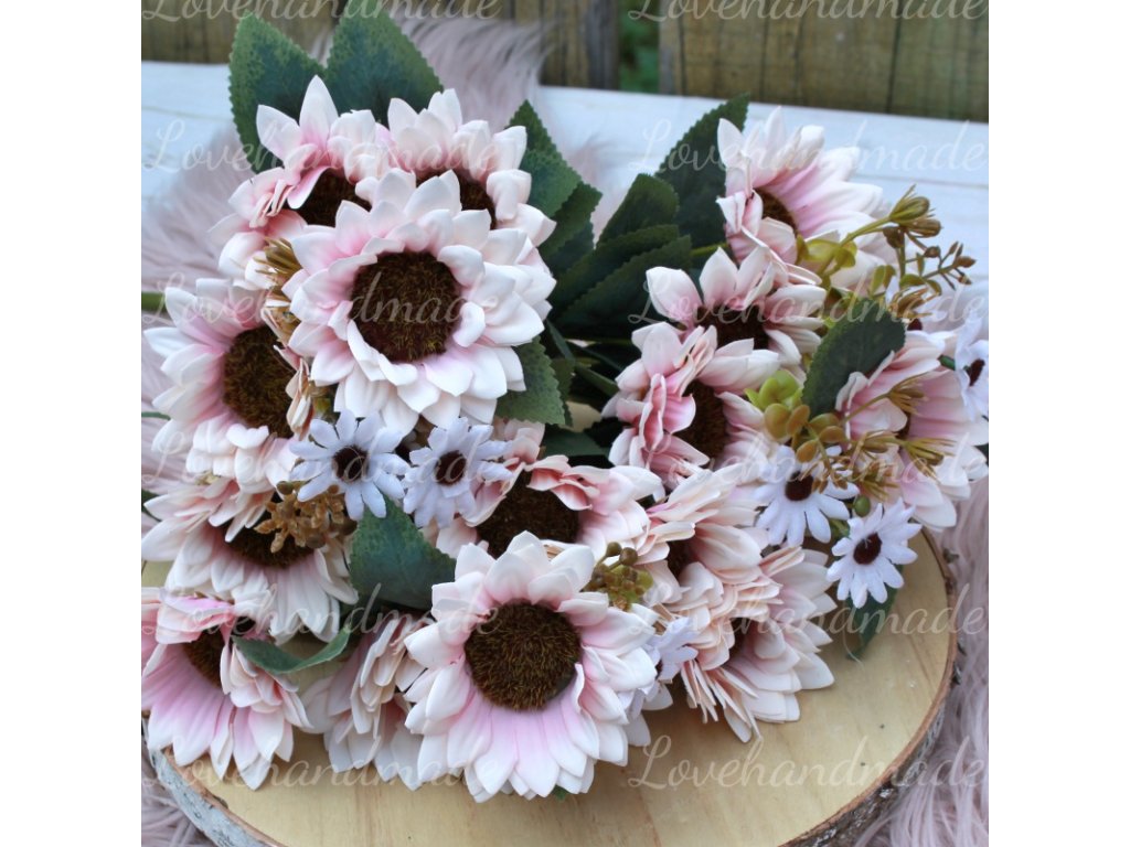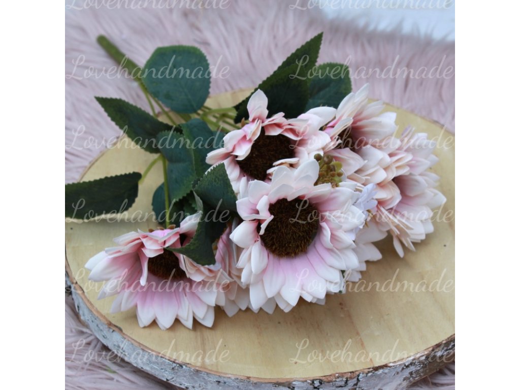 Nádherná kytica slnečníc v bledoružovej farbe s výškou cca 45cm. Vhodná do vázy alebo na dalšie aranžovanie.