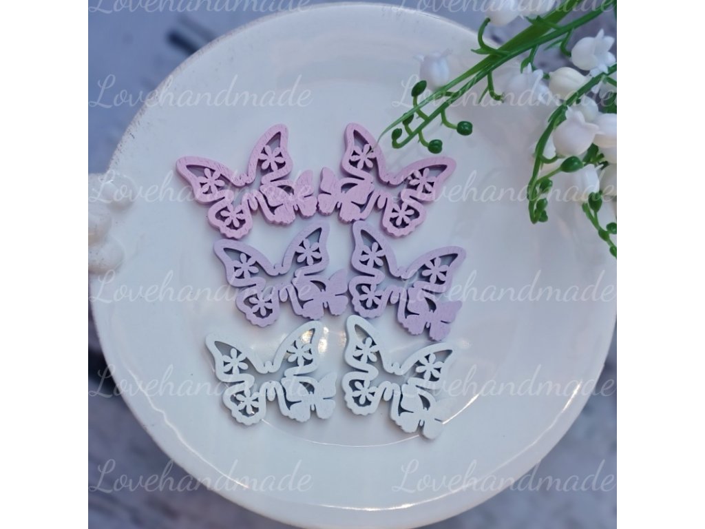 Drevené motýliky mix veľkostí (väčšie a menšie) v balení po 6ks. Vhodné na jarné a veľkonočné aranžovanie. Sú v odtieňoch fialkovej, ružovej a bielej.