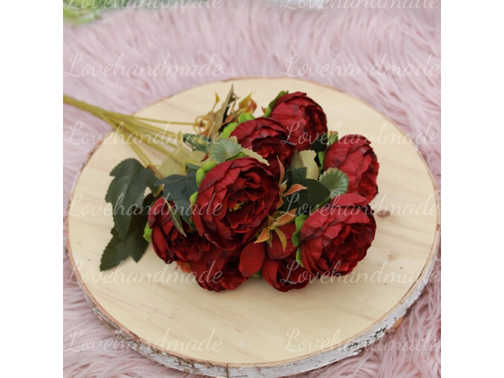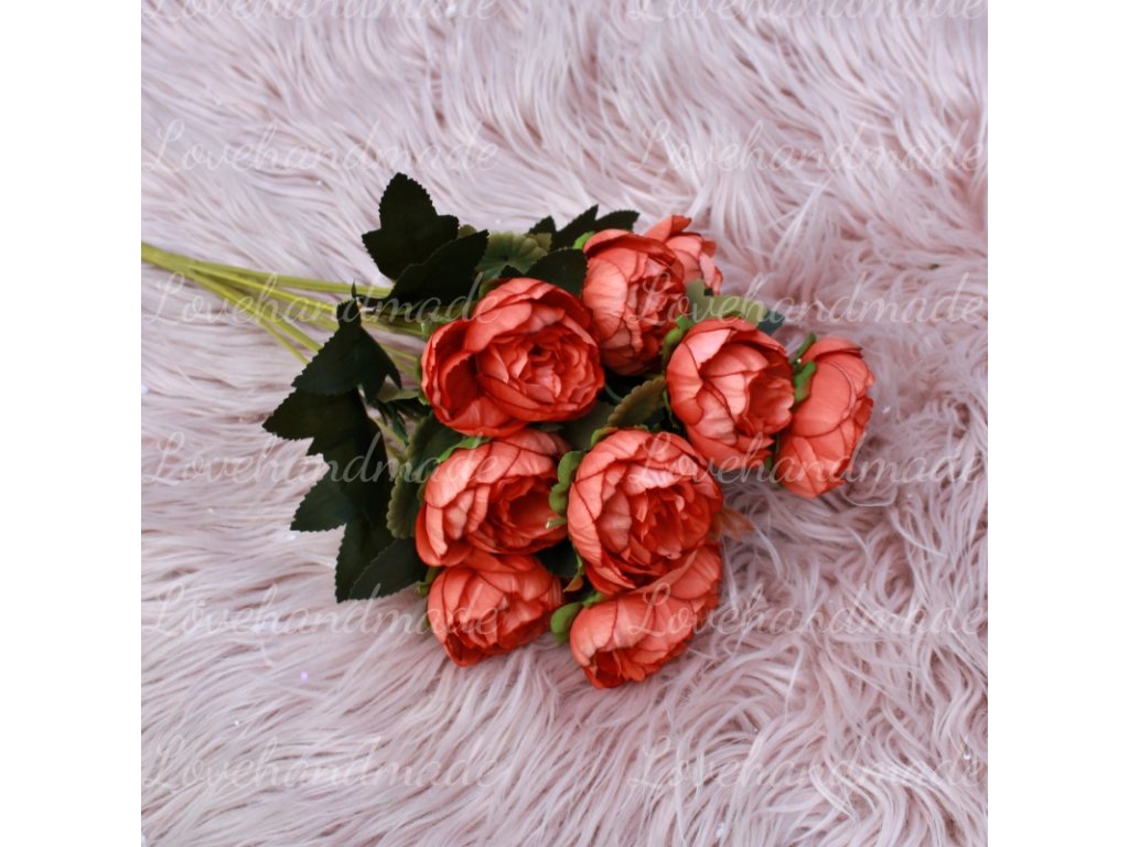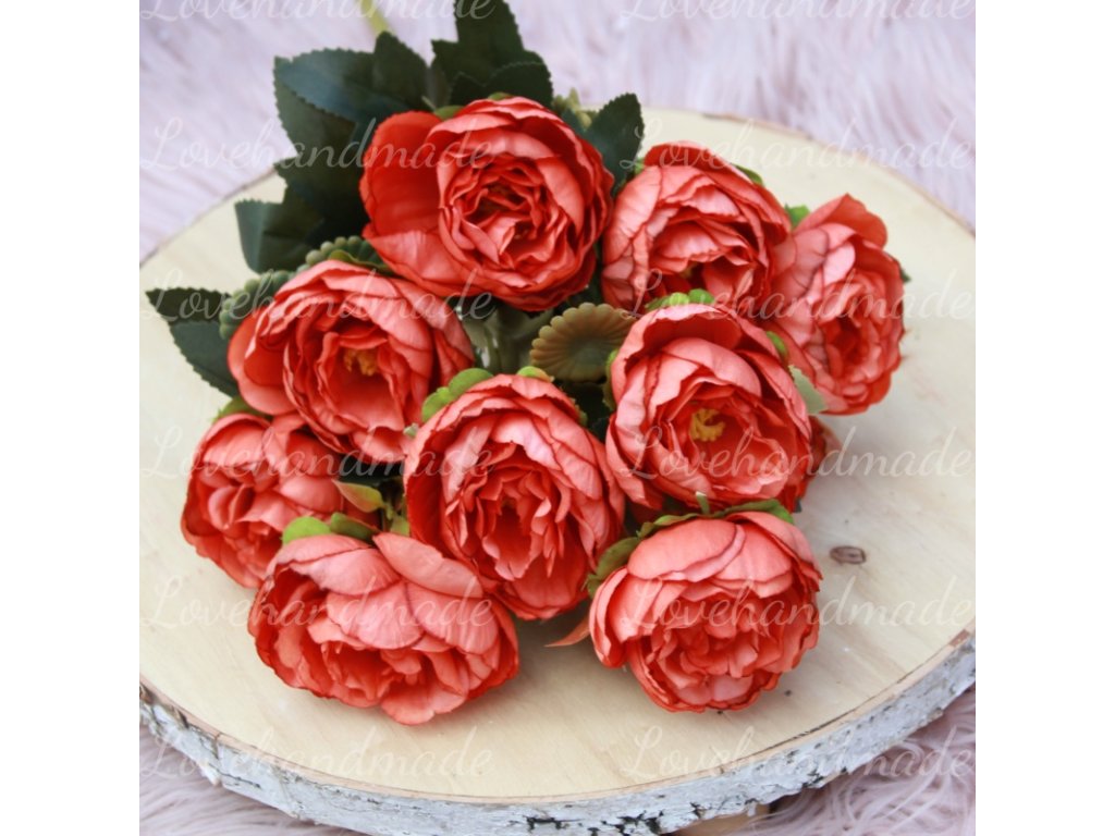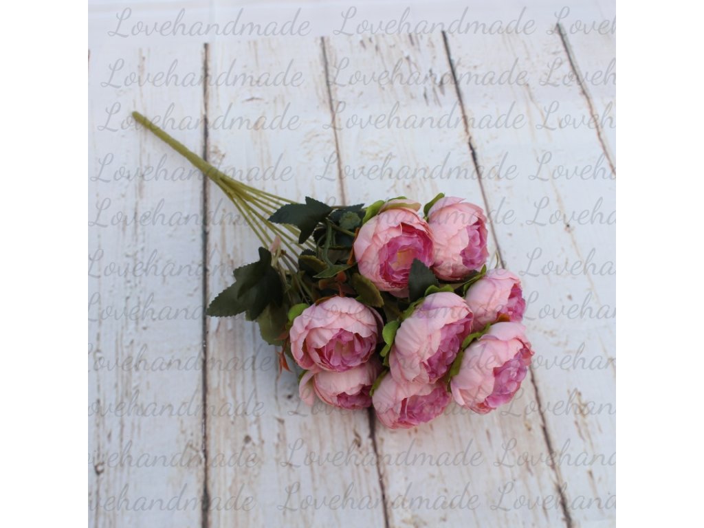 Umelá textilná kytička pivónií, vhodná ako dekorácia do vázy alebo na ďalšie aranžovanie. Krásne živé farby. Celková výška kytičky cca 42cm.