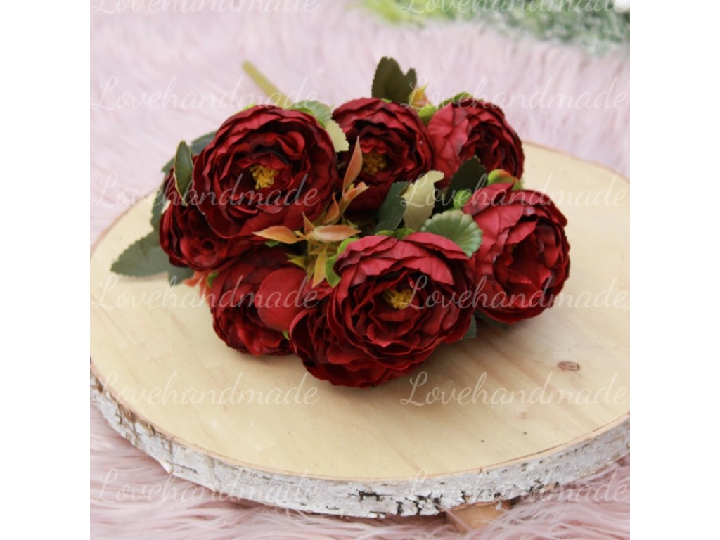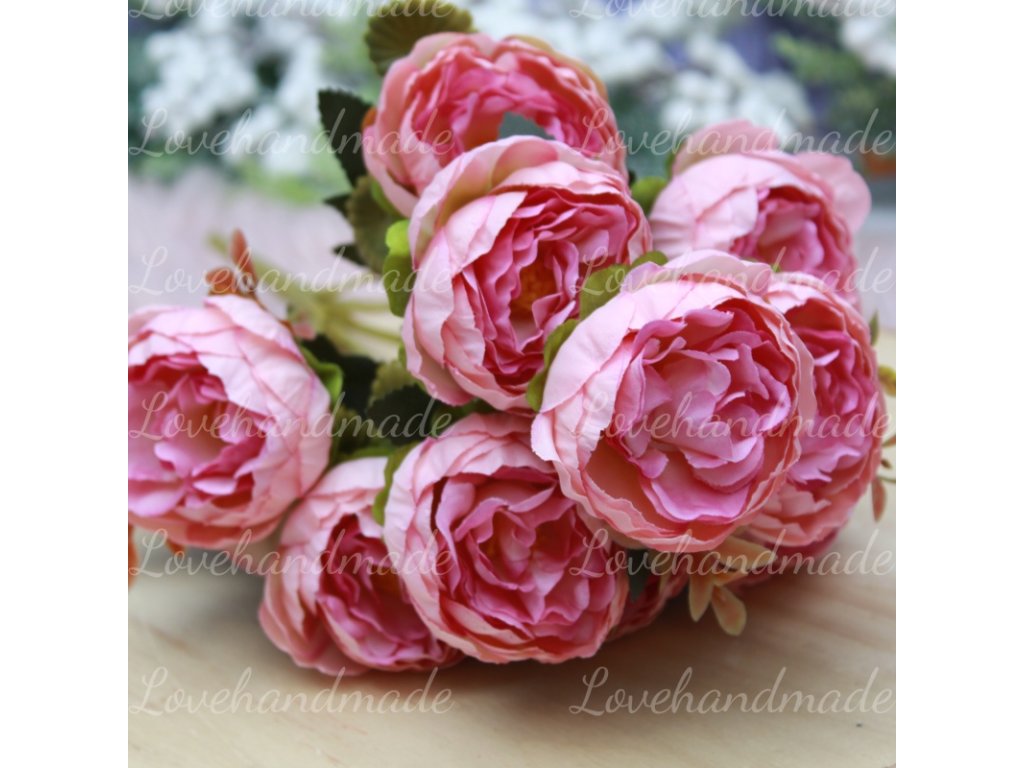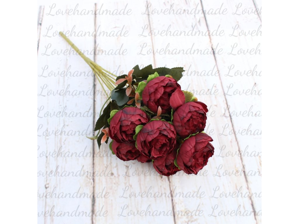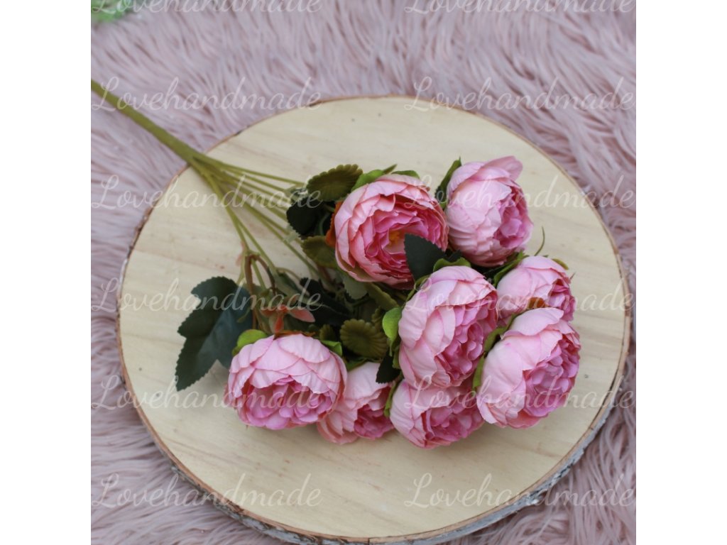 Umelá textilná kytička pivónií, vhodná ako dekorácia do vázy alebo na ďalšie aranžovanie. Krásne živé farby. Celková výška kytičky cca 42cm.