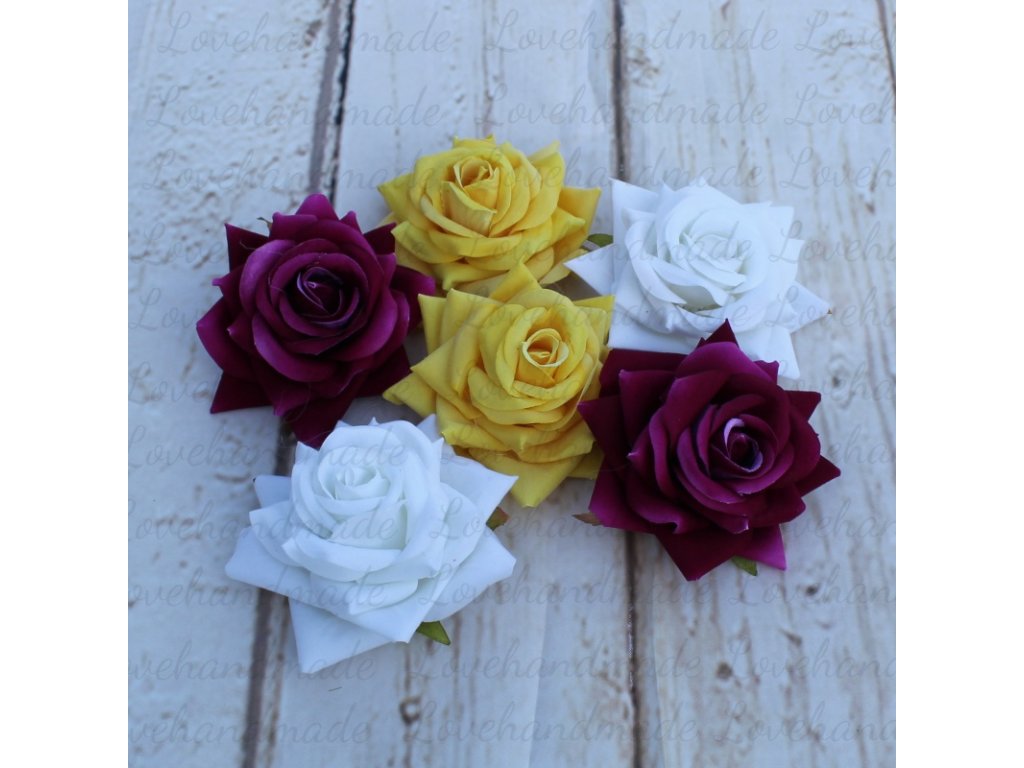 Ruža hlavička zamatová v rôznych farbách. Priemer hlavičky 9cm, cena za jeden kus.