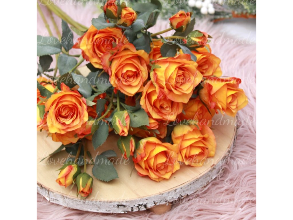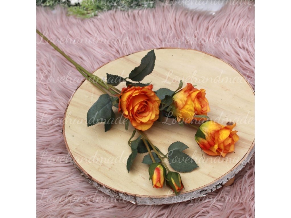 Umelá textilná vetvička ruží v rôznom farebnom prevedeni, vhodná ako dekorácia do vázy alebo na ďalšie aranžovanie. Celková výška kytičky cca 67cm.