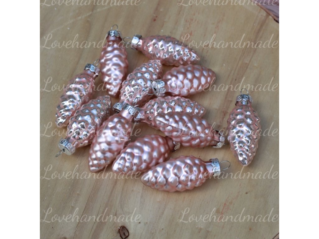 Sklenené šišky ružové 6cm vhodné na vianočné aranžovanie