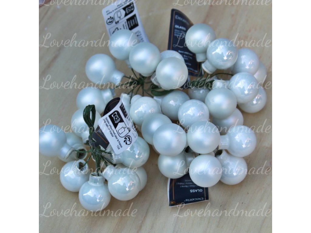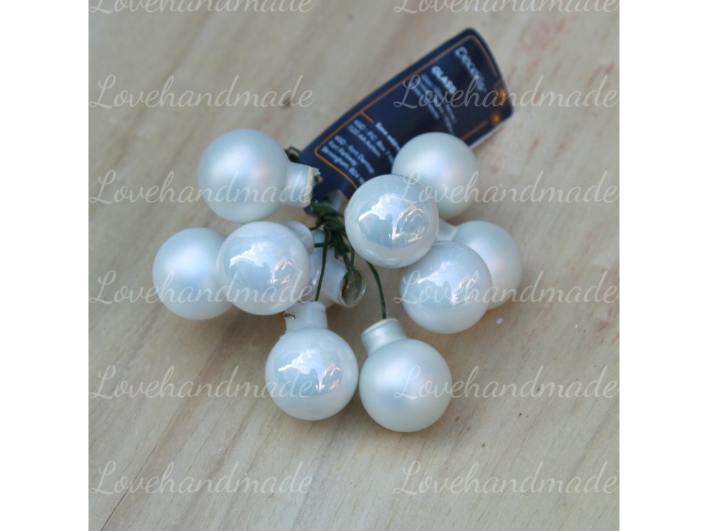 Nádherné sklenené guľky na drôtiku v krásnej bielej lesklej a bielej matnej farbe. Vhodné na vianočné a zimné aranžovanie vencov, ikebán a svietnikov alebo na ozdobeni stromčeka. Priemer gule je cca 2cm a dodáva sa v balení po 10ks. Mix lesklých a matných gulí.
