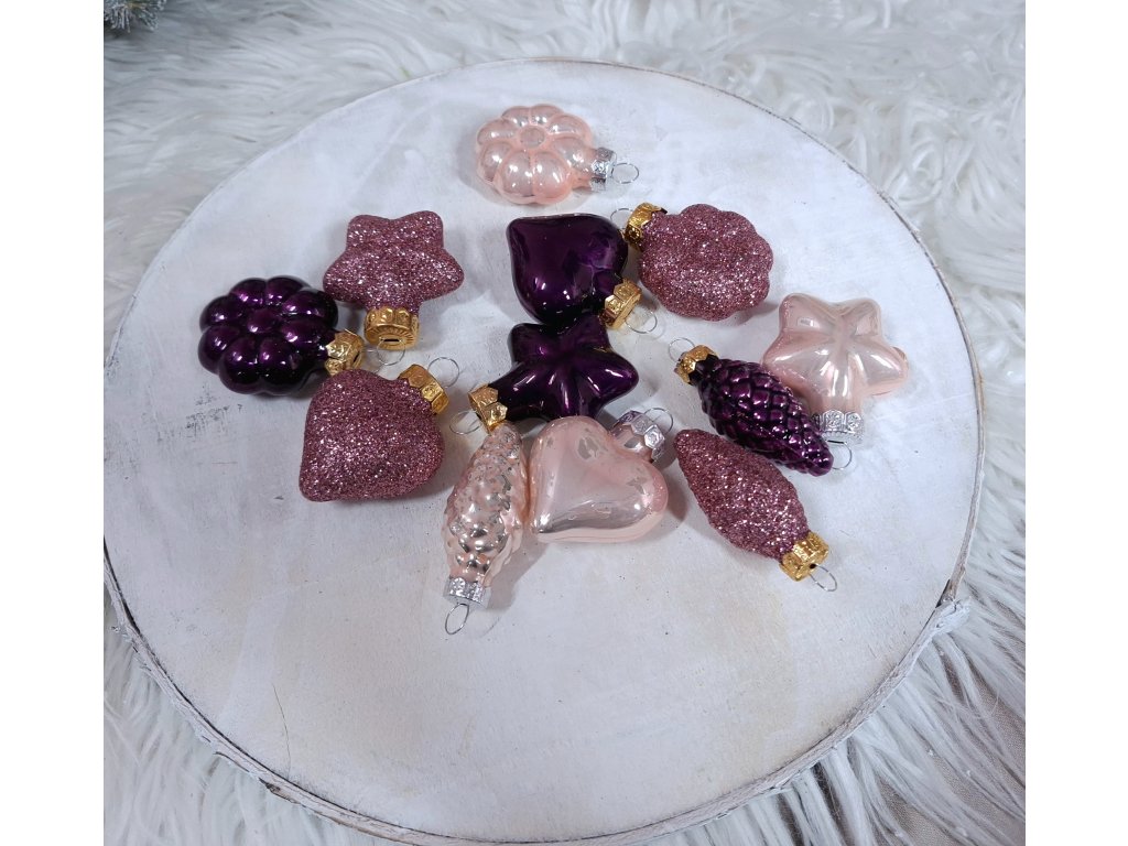 Sklenené ozdoby fialové a ružové, vhodné na aranžovanie. V balení 12ks ako na foto. Vhodné aj ako dekorácia na stromček.