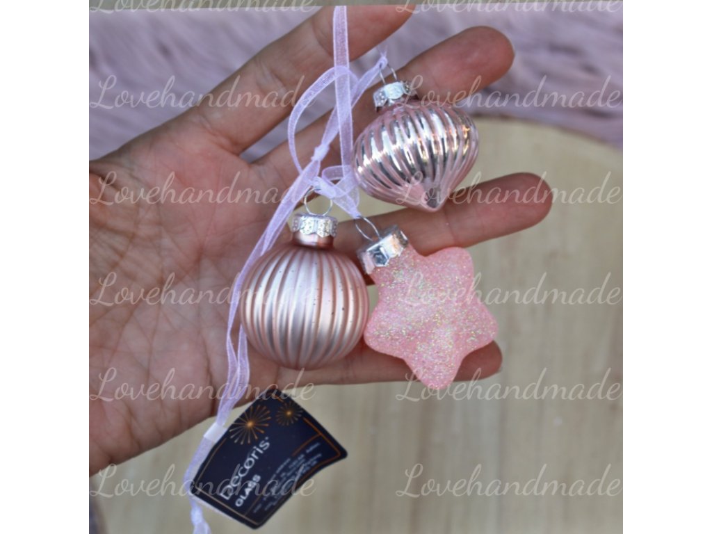 Sklenené ozdoby ružové 4,5cm/3ks