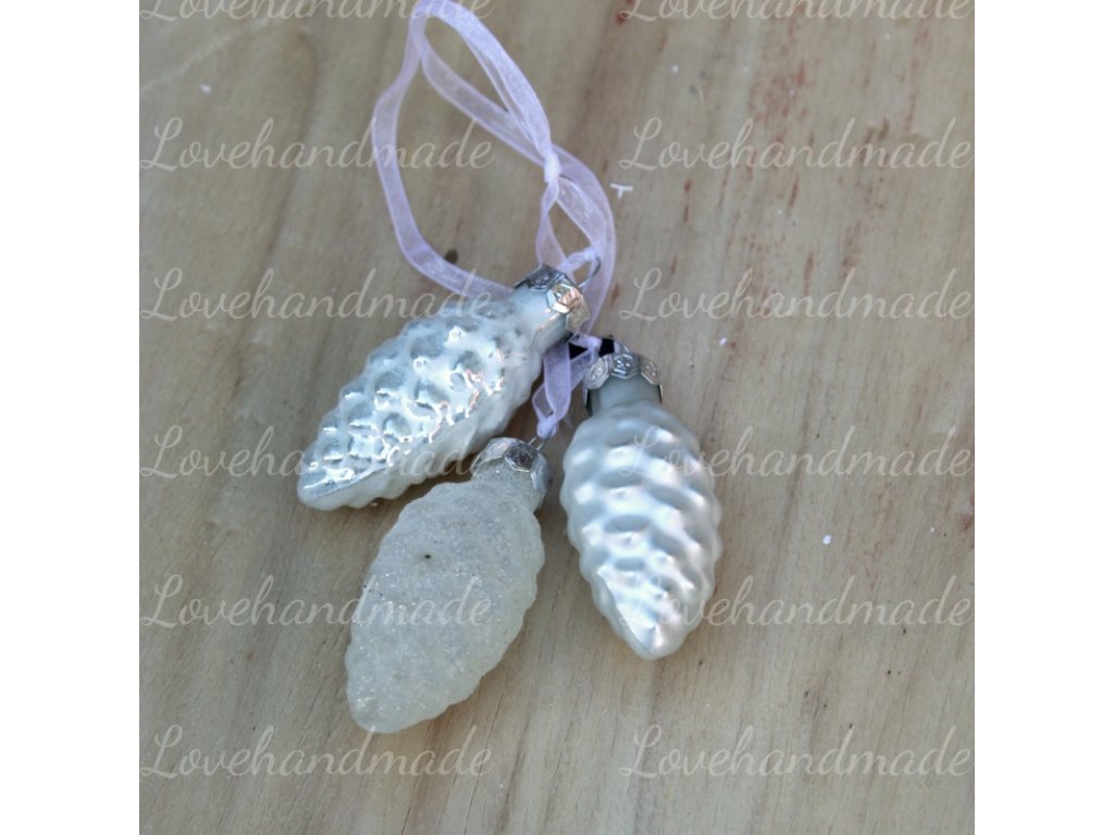 Nádherné sklenené šišky v zväzku v krásnej bielej farbe v troch rôznych odleskoch. Vhodné na vianočné a zimné aranžovanie vencov, ikebán a svietnikov alebo na ozdobeni stromčeka. Priemer šišky je cca 6cm a dodáva sa v zväzku 3ks.