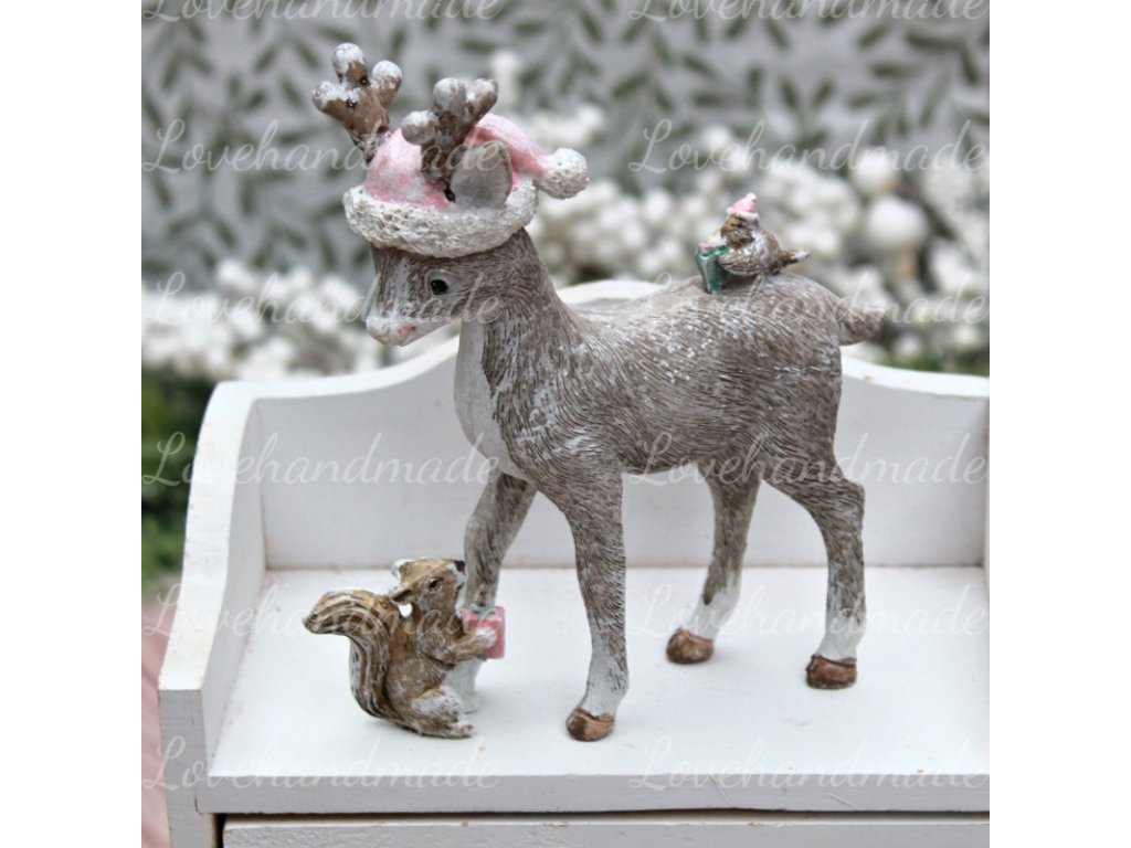 Krásny srnček v čapici so zvieratkami vhodný ako dekorácia