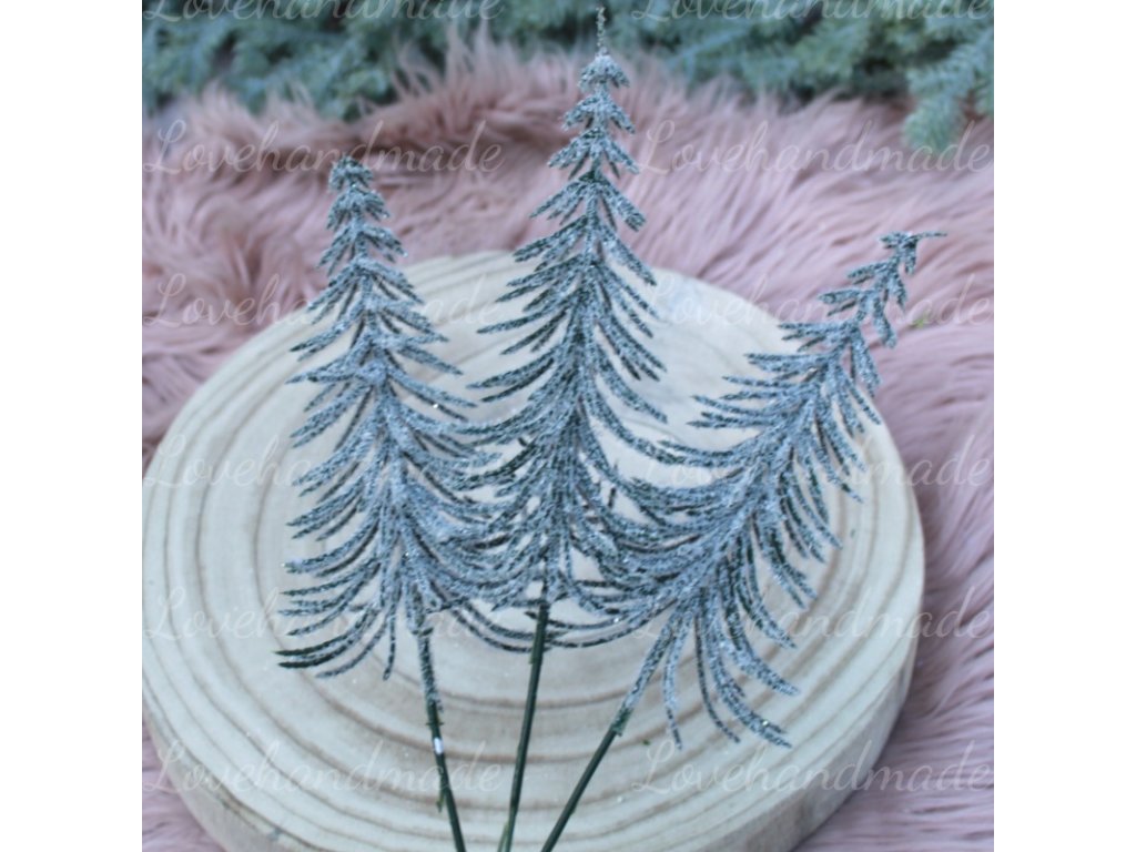 Stromček zápich zelený zasnežený je vhodný na aranžovanie krajiniek, vencov a i. Výška cca 31cm. Šírka v spodnej časti cca 8cm. Materiál plast. Cena za 1ks.