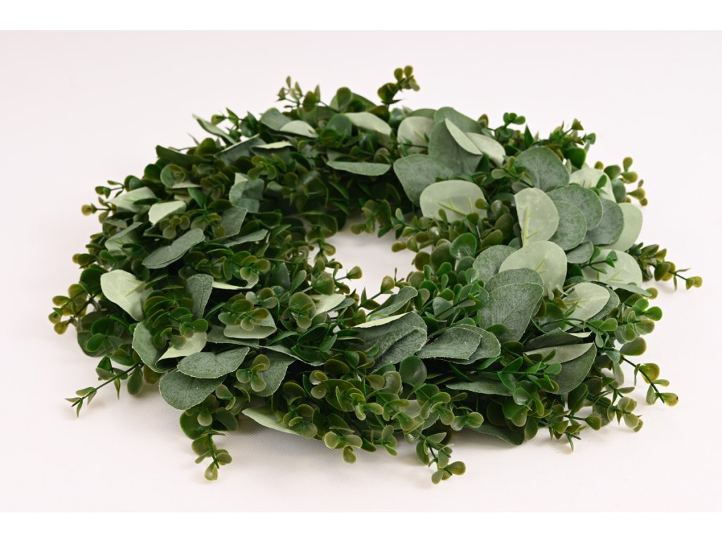 Veniec plast eukalyptus vhodný na aranžovanie s priemerom cca 45cm, záleží od finálnej úpravy. Kvalitné prevedenie. Krásny aj sám o sebe. Ideálny ako dekorácia na dvere.