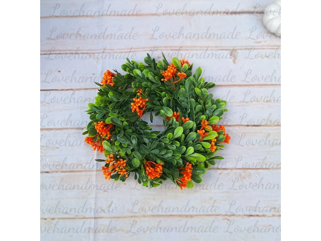 Plastový veniec eukalyptus v jesennom šate s bobuľkami. Priemer cca 25cm, treba si ho upraviť a roztiahnuť. Perfektný na jesenné aranžovanie.