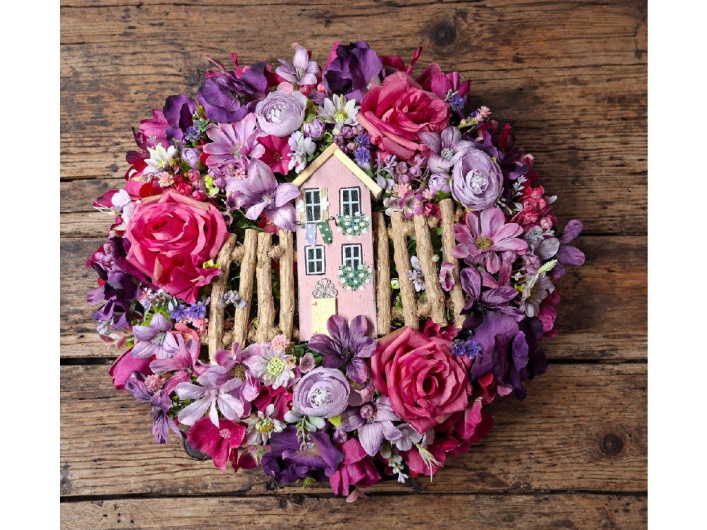 Nádherný veniec vo fialových a cyklaménových odtieňoch s priemerom cca 37cm.