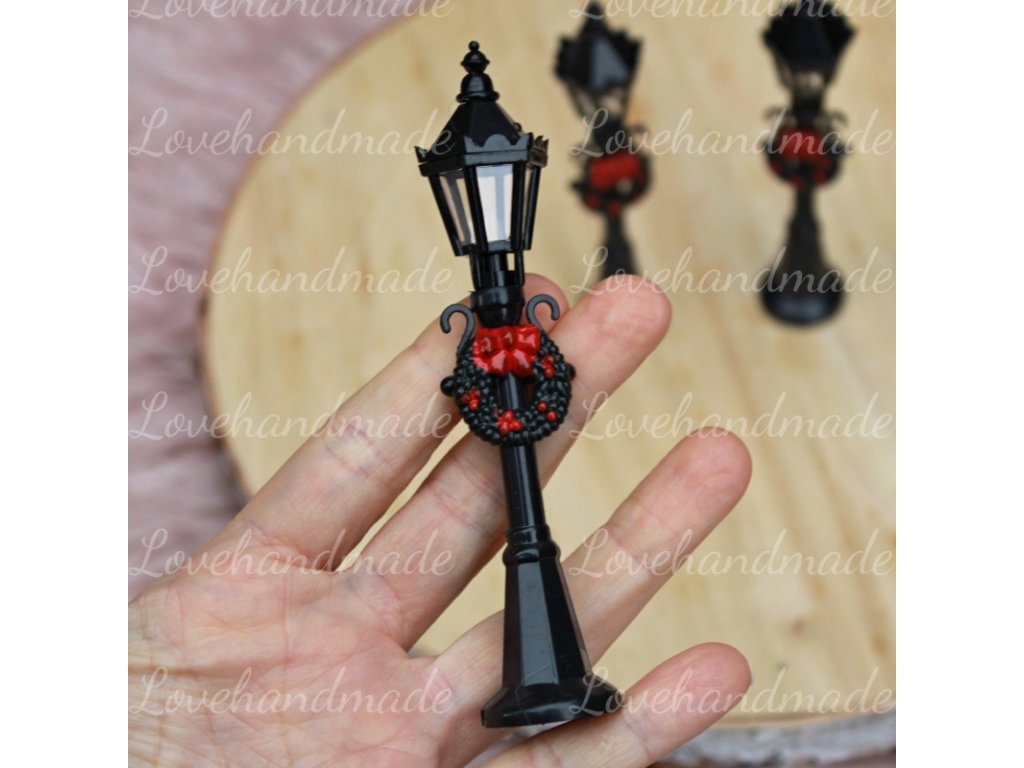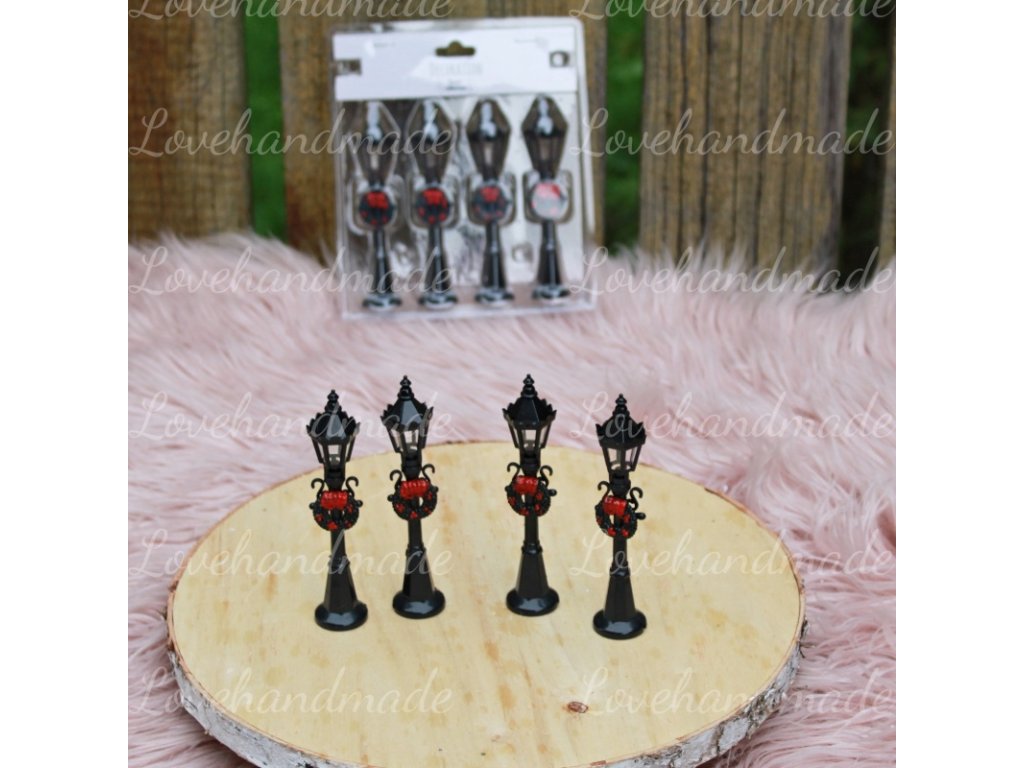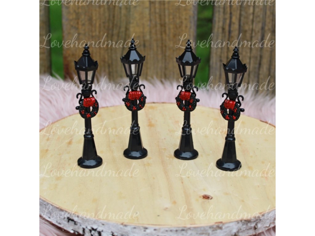 Plastové pouličné lampy vo vianočnom šate. Dekoračný doplnok pre vianočné dekorácie. Výška: 12 cm.