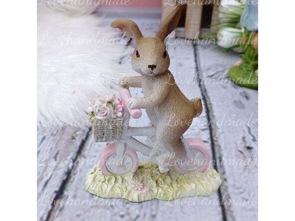 Krásny kvalitný zajko z polyrezínu na bicykli vhodný ako dekorácia alebo na ďalšie aranžovanie.